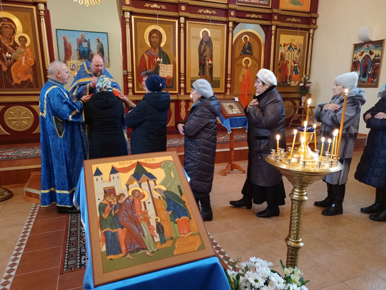 Зажглись лампады и свечи, читаются часы. Прихожане благоговейно и смиренно идут на исповедь.