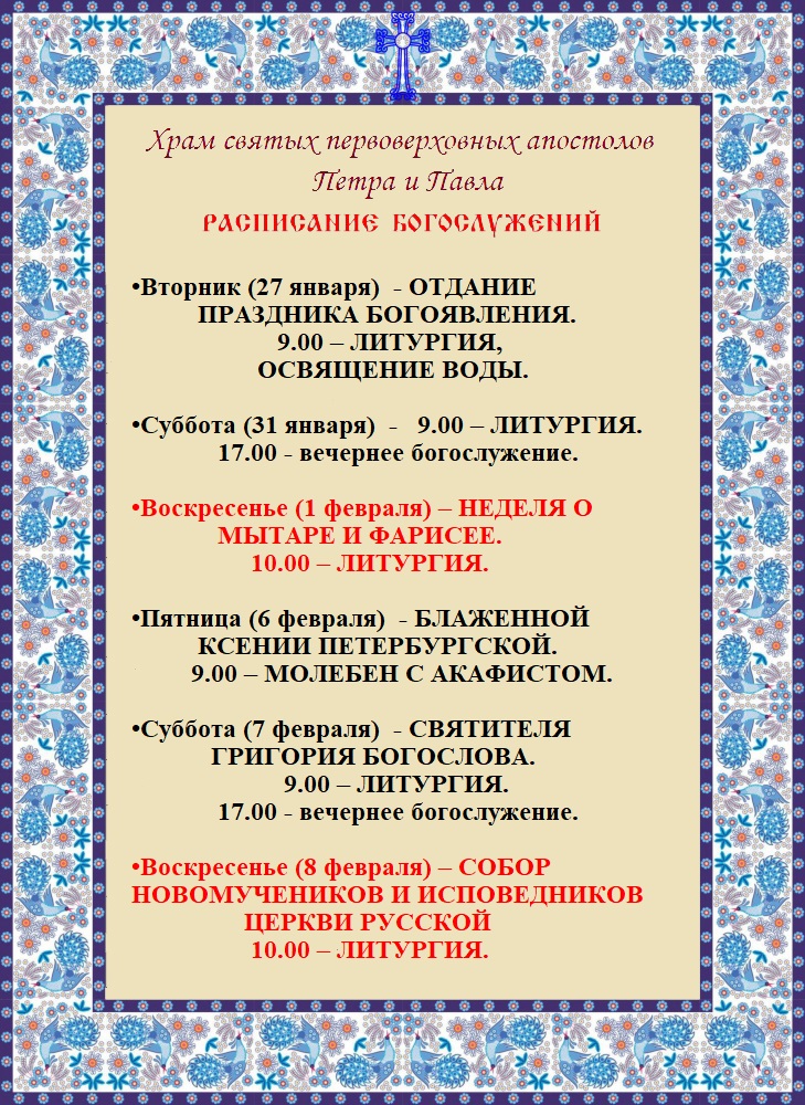 Елена 16.07.2023 на 20:34 Сегодня была на литургии. Спасибо. Хотела посмотреть расписание на следующую неделю. Ответить